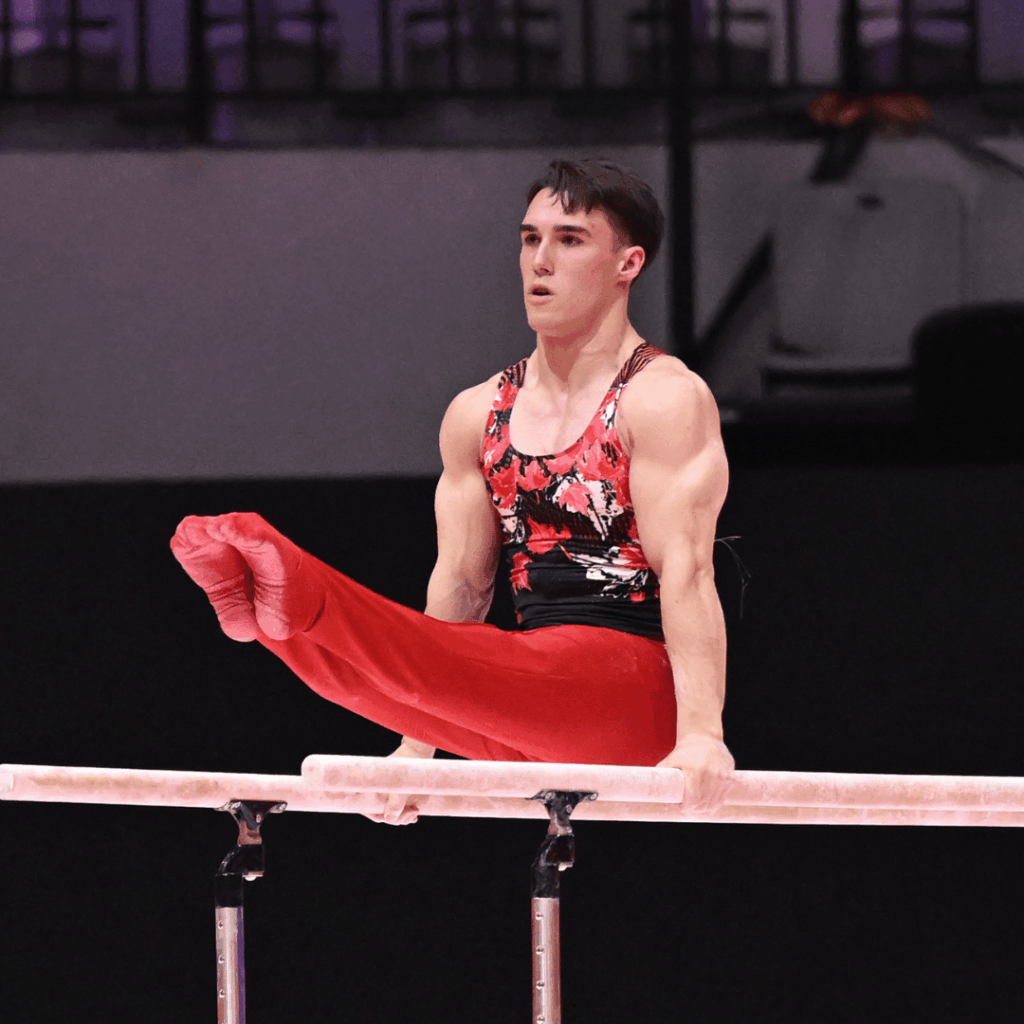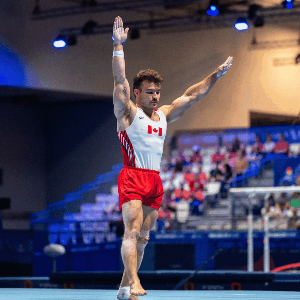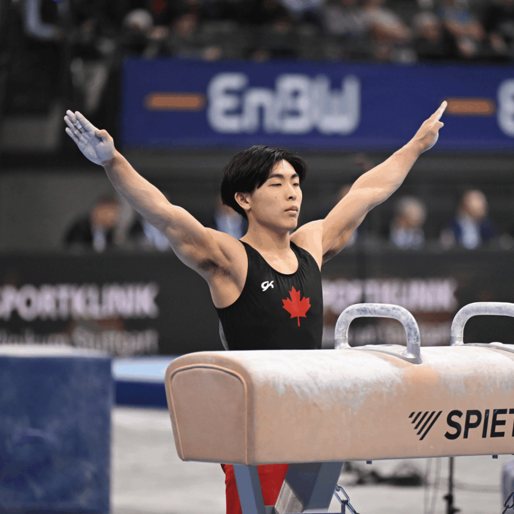 Cheval d’arçons : les athlètes réalisent une série de mouvements acrobatiques, comprenant des balancés, des positions d’équilibre et des transitions fluides, le tout en maintenant une grande stabilité et une parfaite maîtrise du corps.