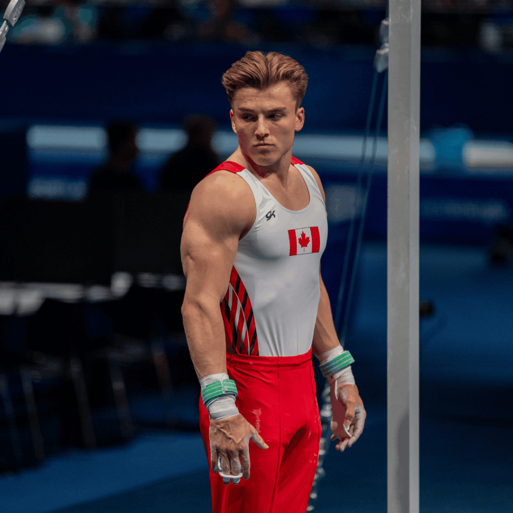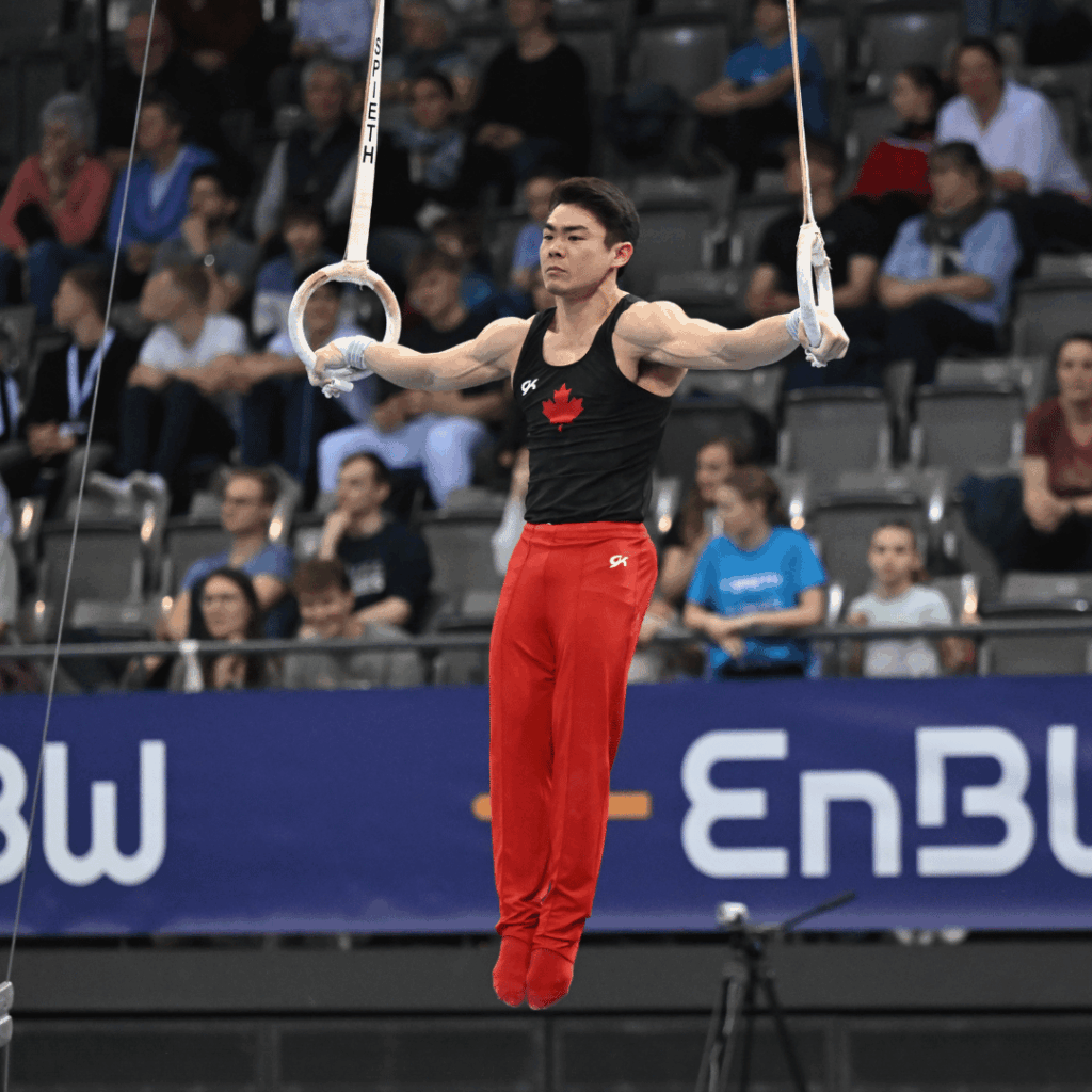 Anneaux : les gymnastes doivent démontrer une force exceptionnelle, une maîtrise musculaire et une capacité à maintenir l’équilibre tout en exécutant des mouvements dynamiques et des acrobaties.