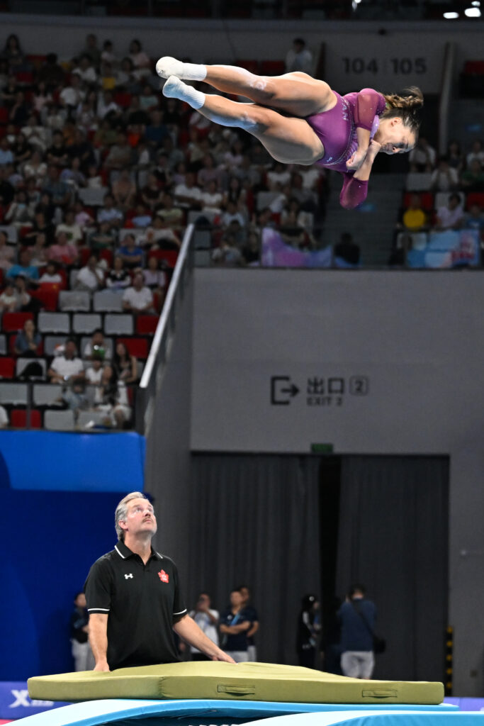 En double-mini trampoline féminin, Gabriella Flynn a impressionné lors des qualifications avec un score de 46,800, se classant quatrième et accédant aux demi-finales. Une passe bien exécutée en demi-finale (27,000) lui a permis de décrocher une place pour la finale de la médaille de bronze. Malgré une routine propre lors de cette finale, Flynn a manqué de peu le podium, terminant quatrième derrière l’Espagnole Melania Rodriguez, dont la difficulté plus élevée lui a assuré la troisième place. Il s’agissait de la deuxième participation de Flynn aux Jeux mondiaux, elle qui avait pris le 7e rang lors de l’édition 2022 à Birmingham.